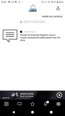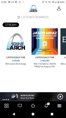 Listen at work, at the gym, on the road, or wherever else you are in the world. Interact with 106.5 The ARCH with a slew of features like listener rewards, listener feedback, notifications and more. We keep track of your total listening time and offer great prizes and rewards for listening. Kind of like frequent flyer miles you can earn these prizes for all the time you spend with us - as if our great music and personalities weren’t enough. ;) Also, your profile that you use to listen on our website is the same as your profile in the app, which means your time spent will be logged no matter how you choose to listen.