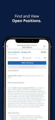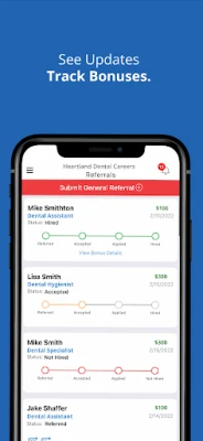 Earn rewards for referring job seekers and practice owners who would benefit from Heartland Dental’s world-class support. Easily make referrals, get updates, and track your bonus in one easy-to-use app.