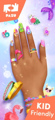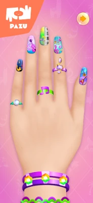Get your nails done on the Nail Art Salon with 4 beautiful themes: Flamingo, Llama, Mermaid and Unicorn, each with its own unique nail shapes, nail polish colors, gradients and glitters, amazing textures, patterns and shapes, awesome stickers and gems.