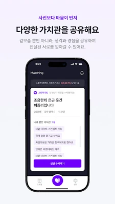 - 겉모습뿐만 아니라 생각과 경험을 공유하며 진실된 서로를 알아갈 수 있습니다.