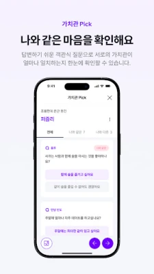 - 상대방과 나의 가치관이 얼마나 일치하는지 한눈에 확인할 수 있습니다.