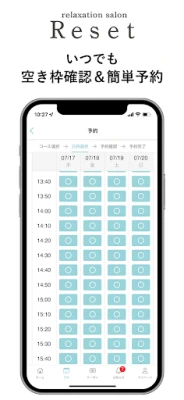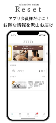 アプリを通してResetの新着情報やお得な情報を受け取ることができます。また、いつでもお手元のスマートフォンから、メニューやご希望のお時間帯のチェック・ご予約などが可能です。アプリをインストールしていただくことにより、Resetをより便利に身近にご利用していただけます。